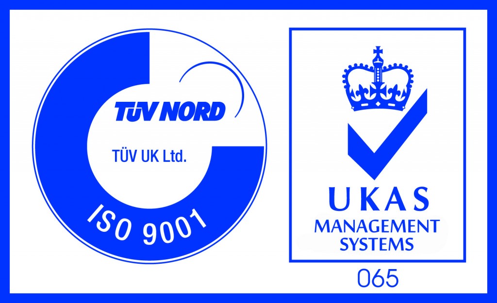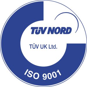 TÜV UK ISO 9001 certification logo demonstrating Falcon Precision’s compliance with international quality management standards.